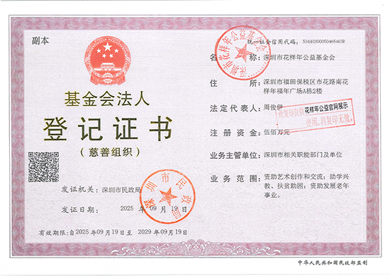 深圳市花樣年公益基金會是由花樣年集團發(fā)起,于2013年3月在深圳市民政局注冊成立的非公募公益基金會,是花樣年集團踐行戰(zhàn)略性企業(yè)社會責任的載體。公益基金會以“樂享公益”為核心理念,以“促進公益事業(yè)發(fā)展,構筑有趣、有味、有料的幸福人生!”為宗旨,共有藝術公益、教育公益、養(yǎng)老公益三大公益品牌項目。